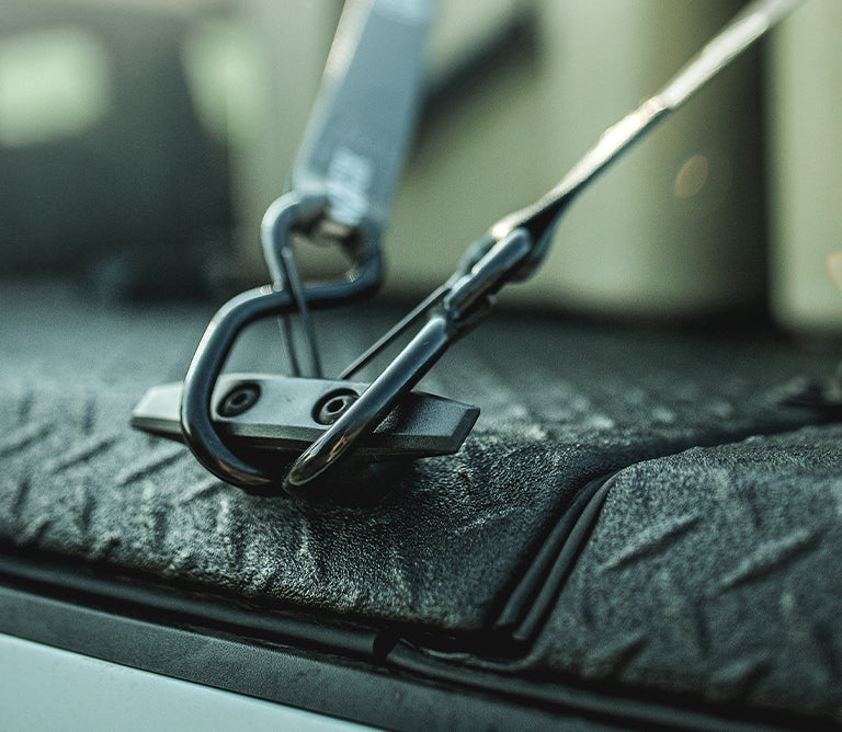 With the ability to haul on top, securing items to the truck bed cover becomes an important part of owning a DiamondBack. Anchor Cleats come in packs of 4 and can be installed on DiamondBack HD, SE, 270, or 180 for strapping loads down on top of your truck bed cover or for securing panels that are folded back when hauling tall cargo.